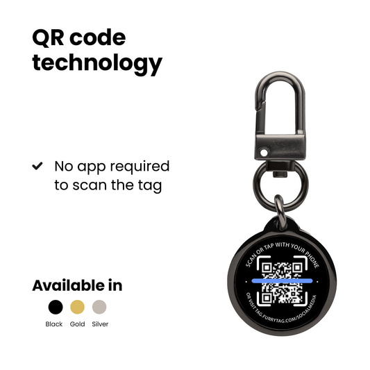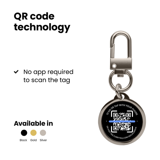 Advanced Pet Safety Tag with NFC Integration, QR Scannability.